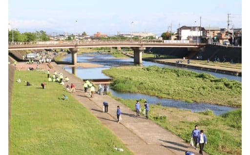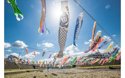 市街地には粟ヶ岳を水源とする加茂川が流れ、春になると河川敷には約500匹もの鯉のぼりが元気よく泳ぎます。