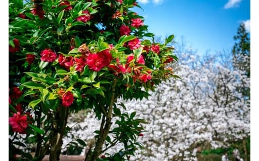 加茂駅から徒歩5分の位置にある加茂山公園は、加茂市の花「ユキツバキ」の群生地として知られ、園内の加茂山リス園では、シマリスたちが可愛くかけまわります。