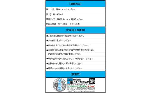 ※真空2層構造ステンレスタンブラー。保温性・保冷性に優れています。