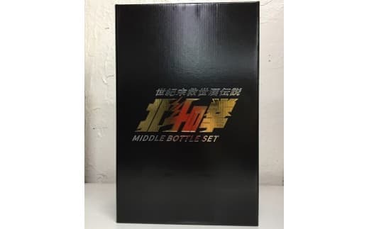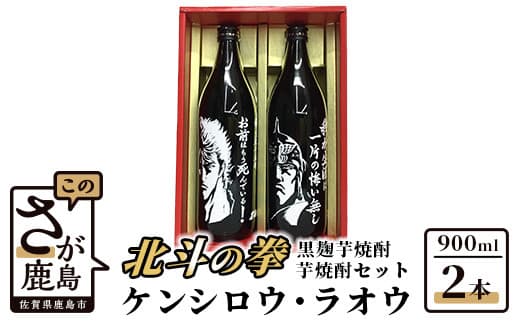 ケンシロウボトルの芋焼酎とラオウボトルの芋焼酎をセットにして専用箱でお届けします。
