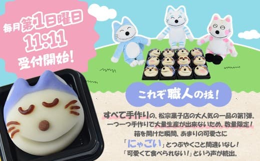 「11ぴきのねこ」が練りきりで登場!【毎月第1日曜日・11:11受付開始!】かわいい!和菓子「11ぴきのねこたち」【毎月11セット限定】スイーツ 和菓子 猫 ねこ お菓子 キャラクター 青森県三戸町 AJ-20-002