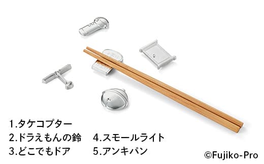 タケコプター・ドラえもんの鈴・どこでもドア・スモールライト・アンキパンの箸置です。