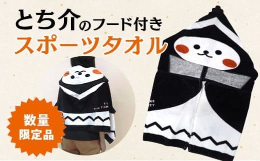 夏のスポーツ観戦や、お子様が可愛らしく被ったり、色んな使い方が楽しめるとち介のフード付きスポーツタオル。数量限定品です。