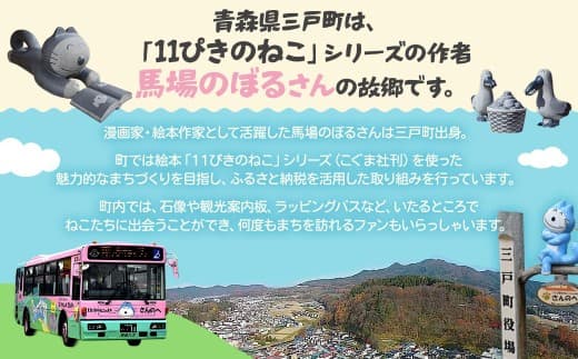三戸町出身の漫画家・馬場のぼる先生が描いた絵本「11ぴきのねこ」シリーズをより楽しめるぬりえブックセットになっています。