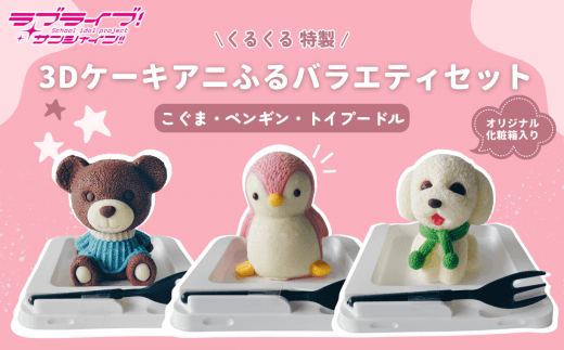 【 ラブライブ!サンシャイン!! × 沼津市市制100周年記念 】 オリジナル化粧箱入り (株)くるくる特製 3D ケーキ アニふる バラエティセット( こぐま ・ ペンギン ・ トイプードル 各1個 )母の日 父の日