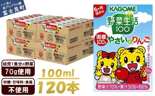 安心して生後6ヶ月頃のお子様からでもお飲みいただけます。砂糖・食塩・甘味料不使用カゴメ 野菜生活100 国産100%やさいとりんご 120本 100ml 子供 6ヶ月頃から 幼児 1食分の野菜 紙パック 野菜ジュース 飲みきりサイズ 野菜 手軽 砂糖不使用 食塩不使用 甘味料不使用 無塩