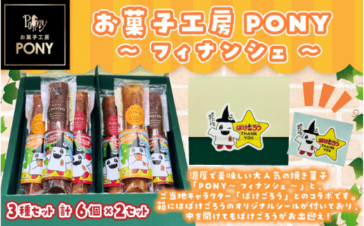 濃厚で美味しい大人気の焼き菓子、ポニーの「フィナンシェ」と、ご当地キャラクター「ばけごろう」のコラボです!