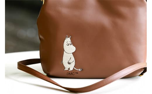 素材には軽くて柔らかな国産レザーを使用し、ボトム部分にはムーミンのイラストが刺繍されています。