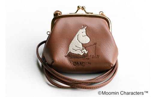 【あだち子どもの未来応援基金】限定品★ムーミン こどもミライサポート企画での展開ムーミン こどもミライサポート がま口ポーチ (ブラウン) MOOMIN|国産レザー 革 ショルダーストラップ付 [0657]