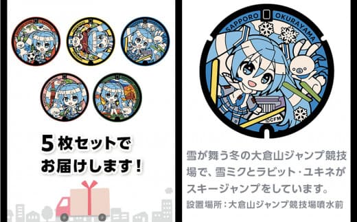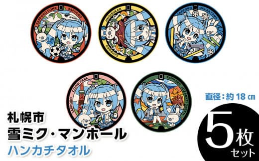 ■関連キーワード:ハンカチ タオル 雪ミク 初音ミク マンホール 5種セット 直径約18cm 5枚セット グッズ タオルハンカチ 雑貨 日用品 ギフト ご当地 下水道展'23札幌 オリジナル デザイン nekosumi 北海道 札幌市