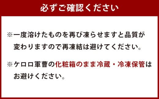 ※一度溶けたものを再び凍らせますと品質が変わりますので再凍結は避けてください。