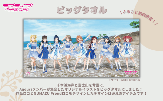千本浜海岸と富士山を背景に、Aqoursメンバーが集合したオリジナルイラストをビッグタオルにしました!