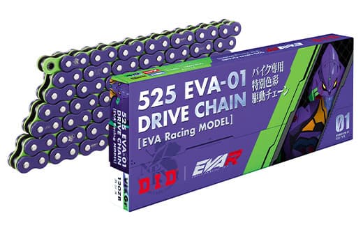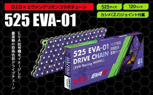 EVA初号機をイメージした最高峰の特殊色彩ドライブチェーンD.I.D×エヴァンゲリオンコラボ バイクチェーン【525サイズ 120リンク カシメ(ZJ)ジョイント付属】 F6P-2409