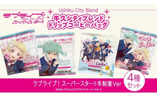 ラブライブ!スーパースター!! 冬制服Ver 「ドリップコーヒーバッグ」牛久シティブレンド ドリップコーヒーバッグ( ラブライブ!スーパースター!! 冬制服Ver)4種セット ラブライブ アニメ コーヒー 珈琲 ドリップ コラボ 広報大使 鬼塚姉妹 Liella! 鬼塚夏美 鬼塚冬毬 オリジナル 限定 牛久市