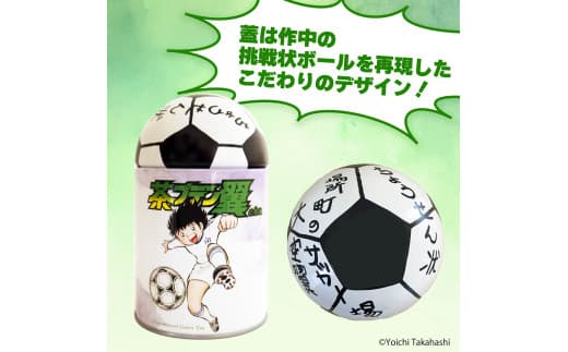茶缶のデザインには単行本第1巻の表紙である大空翼がボールを蹴りながら飛び上がるシーンを採用。