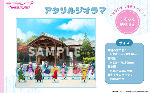 沼津御用邸記念公園を背景に、Aqoursメンバーが集合したオリジナルイラストがアクリルジオラマとして登場!