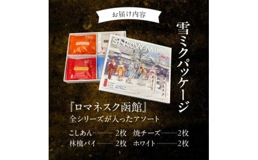 函館市民に長年愛されている、ホンモノのご当地スイーツが雪ミクとコラボ【ふるさと納税】【雪ミクパッケージ】 ロマネスク函館 あそーと 8枚 各種 2枚 × 4種類 ご当地 パイまんじゅう こしあん 焼チーズ 林檎パイ ホワイト パイ まんじゅう 焼きたて 香り 食感 常温 お取り寄せ お取り寄せグルメ 函館市 北海道 送料無料 _HD070-003