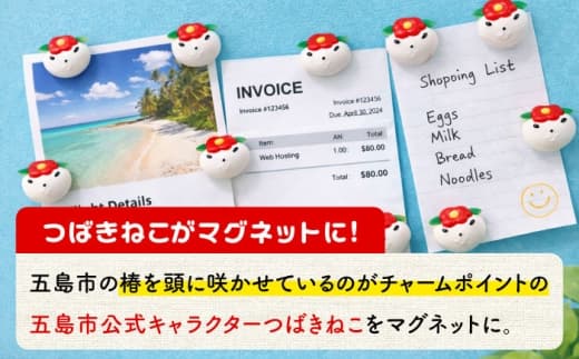 ■五島市の公式キャラクー「つばきねこ」の、愛らしいマグネットセットをお届けします!