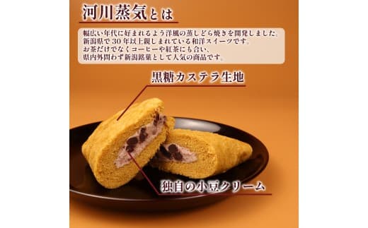 河川蒸気(かせんじょうき)は黒糖風味の蒸し生地を国産小豆を使ったオリジナル和風クリームで挟んだ「蒸しどら焼き」です。